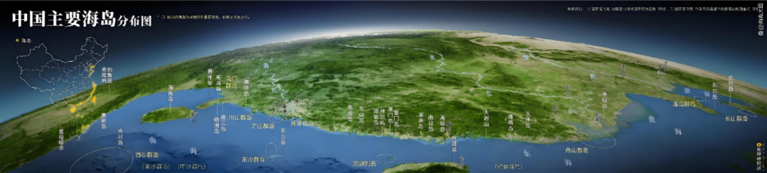中国面积超过1000平方千米的大岛有3个:台湾岛、海南岛、崇明岛。按其成因可分3类:基岩岛、冲积岛、珊瑚礁岛。东海约占岛屿总数的60%,南海约占30%,黄、渤海约占10%。