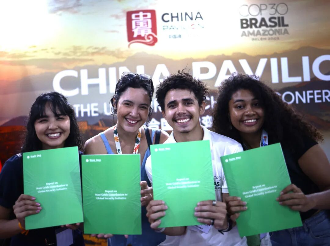 COP30大会中国角观众翻阅国家电网《落实全球安全倡议贡献报告》