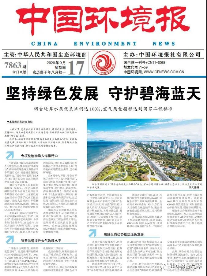【坚持绿色发展 守护碧海蓝天】中国环境报专版刊发生态环境质量改善“烟台经验”