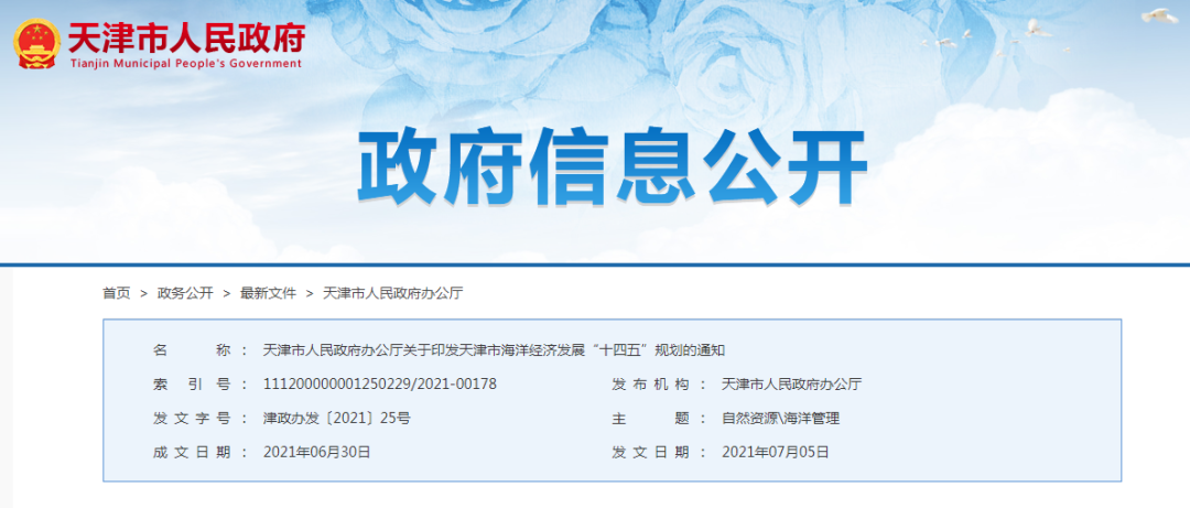 海洋是高质量发展战略要地。“十四五”时期,是天津在全面建成高质量小康社会基础上,开启全面建设社会主义现代化大都市新征程的第一个五年,也是天津实现高质量发展的关键时期。深刻把握国际国内发展形势,贯彻新发展理念,科学谋划和实施《天津市海洋经济发展“十四五”规划》(以下简称《规划》),对于贯彻落实国家加快建设海洋强国战略部署,推进海洋经济转型升级,培育海洋经济新动能,提升海洋治理能力和水平,高水平建设现代海洋城市,支撑天津经济社会高质量发展,具有重要的战略意义。