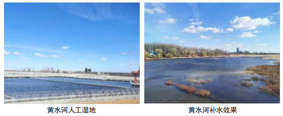 目前,黄水河湿地已投入运行,初步测算可直接削减CODcr总量约438吨/年、NH3-N总量约58.4吨/年,入河补源水量可达1000万方/年,有效实现再生水利用,大大缓解区域水资源紧缺状况,改善周边水生态环境,具有经济效益、社会效益、生态效益。
