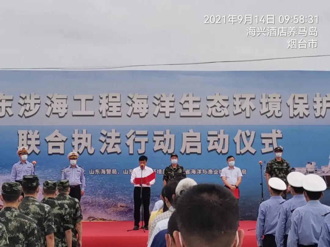 为深入贯彻习近平生态文明思想,加强海洋污染防治和生态保护,9月14日上午,山东海警局、省生态环境厅、省海洋与渔业执法监察局联合举办的“山东涉海工程海洋生态环境保护联合执法行动”在烟台正式启动。省生态环境厅党组成员、副厅长崔凤友出席启动仪式并讲话。