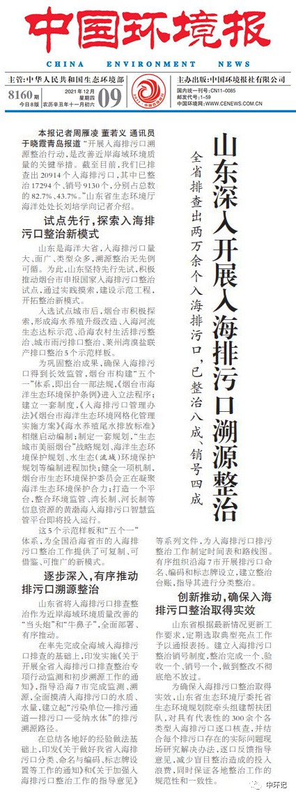 山东省将入海排污口排查整治作为近岸海域环境质量改善的“当头炮”和“牛鼻子”,全面部署、有序推动。