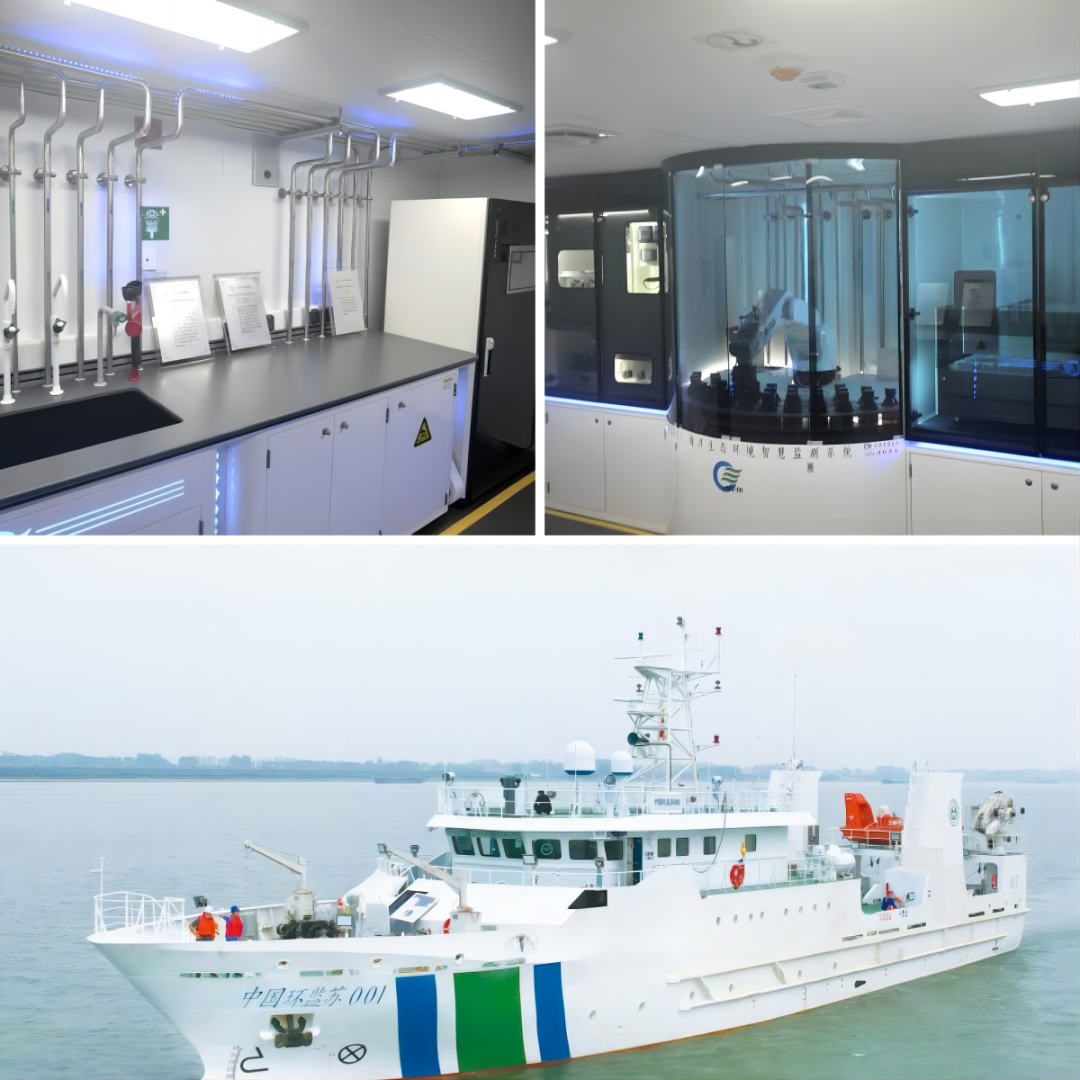 江苏海洋生态环境监测工作起步于2001年,从“两间房、三个人、四台仪器”开启了由弱到强、逐步壮大的发展征程。坚持能力为纲,实力说话。十年来,江苏省环境监测中心(江苏省海洋环境监测预报中心)立足陆海污染防治协同性和生态环境保护整体性,结合业务发展持续拓增海洋生态环境监测场所,实验面积达1500平方米,拥有各类实验室31间、专业监测仪器设备80余台(套),实验室资质认定能力涵盖海水水质、海洋沉积物、海洋生物、海洋生物体残留、海洋水文、海洋气象等6大类104个项目,涉海监测项目上岗持证人数逾50人,海洋生态环境监测资质认定项目和持证上岗人数均稳步增加,海洋生态环境监测能力持续增强。2022年11月2日,江苏首艘近海生态环境监测执法船“中国环监苏001”正式入列。该船以“透明海洋、数字生态、智慧监测、近零排放”作为建设目标,排水量800吨,续航力2000海里,自持力20天。作为国内第一艘采用柴电混合动力,并集监测、试验、科考、执法为一体的综合型公务船,该船自主研发的船型智能优化技术设计和混合动力模式,充分满足了监测作业低噪声和执法监管高航速差异化需求。船舶配置有先进的监测调查作业、综合船务管理、远程视频会议及船岸一体化指挥系统,具备在江苏及周边近岸海域开展生态环境全要素现场监测采样和船载实验室常规检测分析能力,有效填补了江苏生态环境领域海洋重大装备的空白,标志着江苏海洋生态环境现代化治理能力水平迈上新台阶。