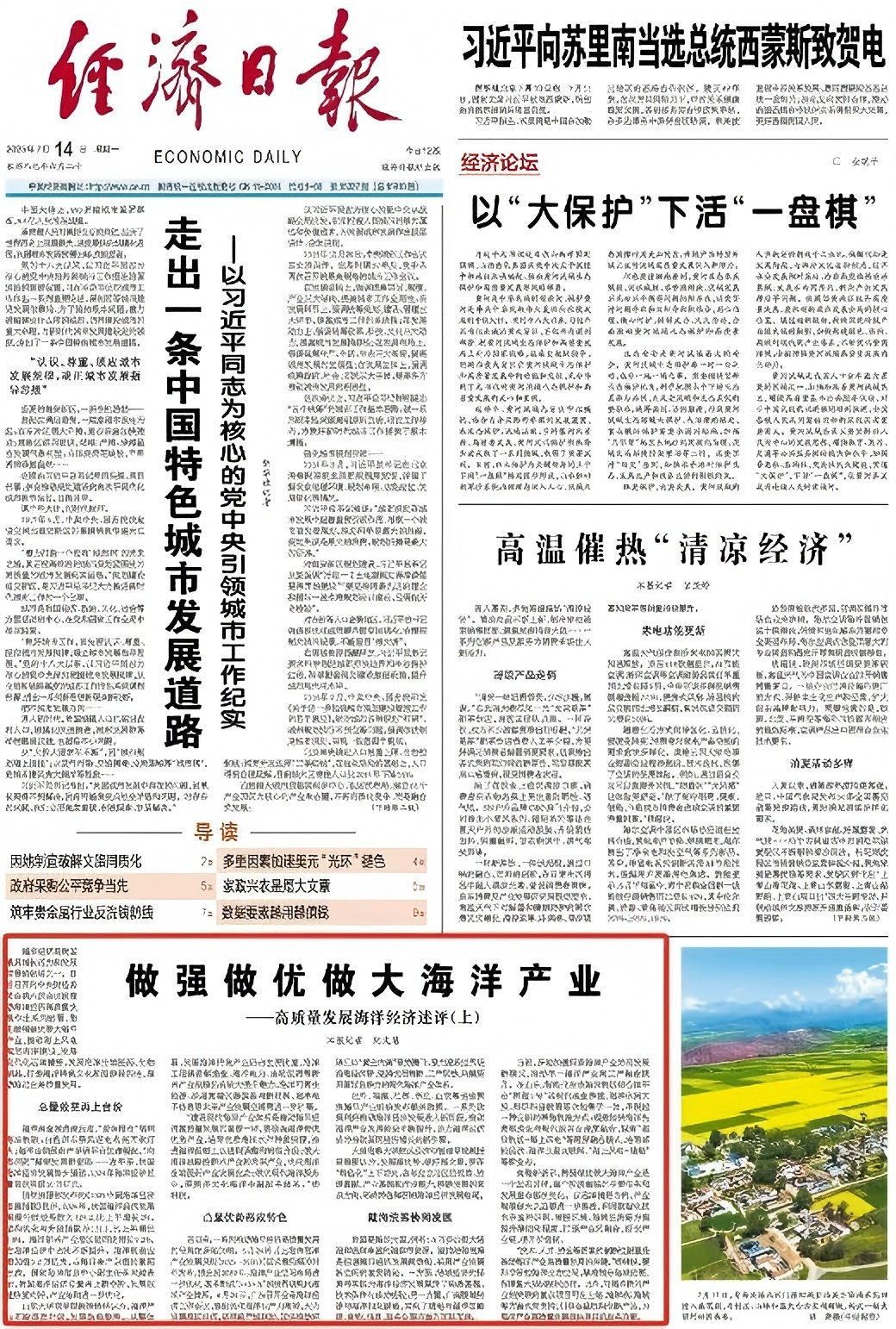 海洋经济是我国最具增长活力和发展前景的领域之一。日前召开的中央财经委员会第六次会议就推动海洋经济高质量发展作出系列部署,指出做强做优做大海洋产业,推动海上风电规范有序建设,发展现代化远洋捕捞,发展海洋生物医药、生物制品,打造海洋特色文化和旅游目的地,推动海运业高质量发展。