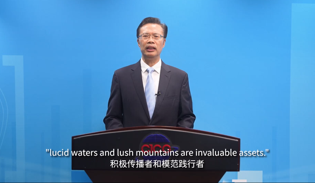 中国国际经济交流中心科研信息部副部长刘向东、美国哥伦比亚大学可持续管理学教授郭栋分享报告
